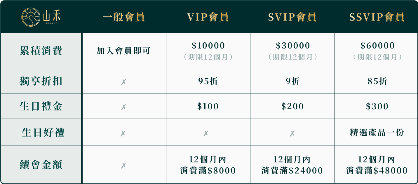 山禾專屬VIP會員制度