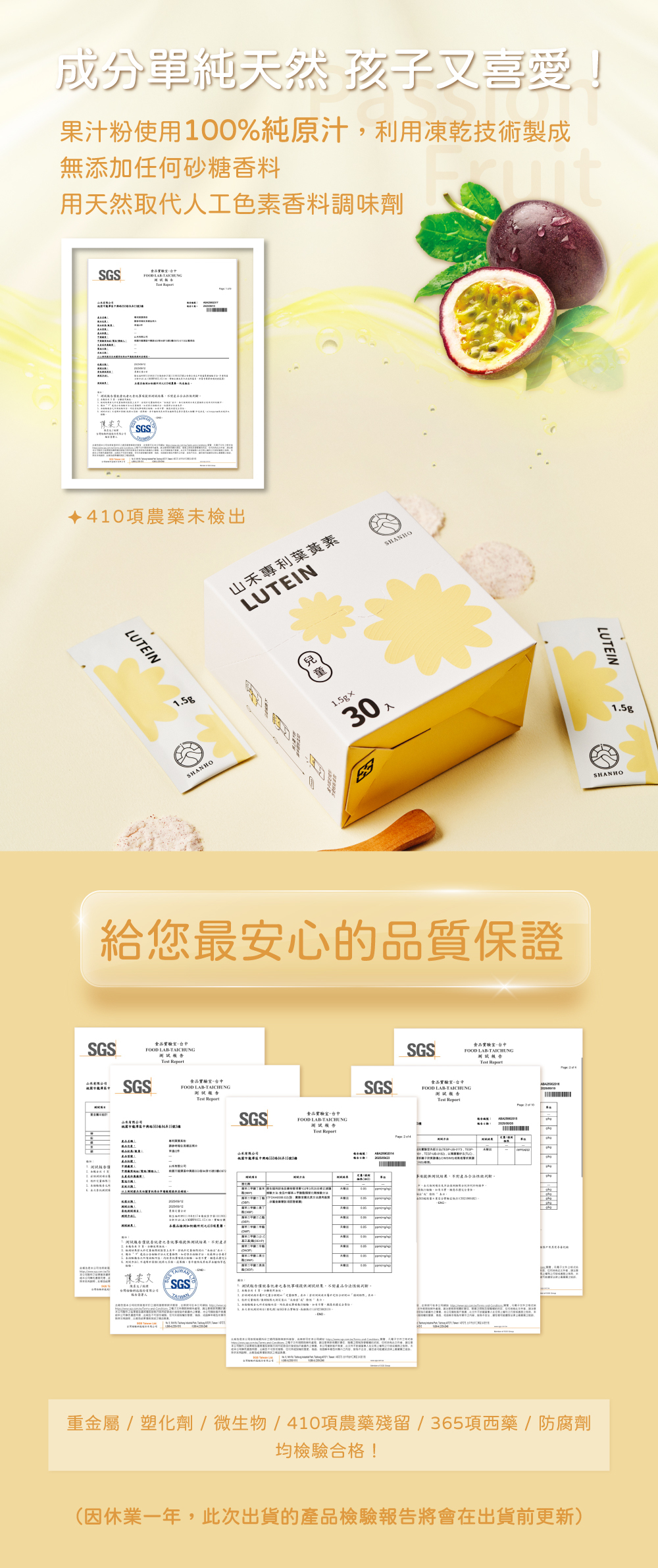 成分:百香果凍晶粉、葉黃素、藻粉、金盞花萃出物