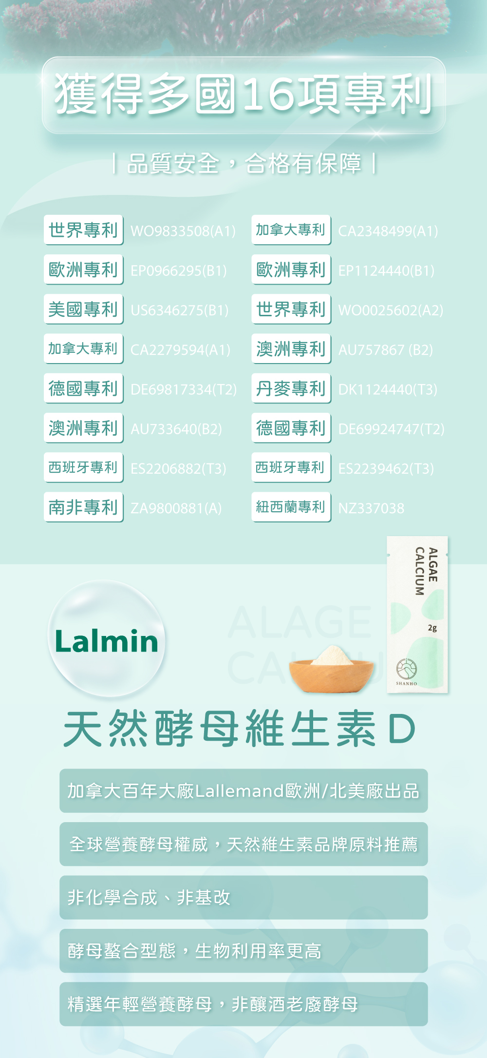 成分:果寡糖、海藻鈣、啤酒酵母(含維生素D)